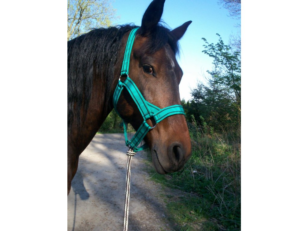 Ohlávka je v elegantní černé barvě, která je univerzální a praktická. Díky své robustní konstrukci a dostatečné šířce popruhů je ideální pro manipulaci s velkými a silnými koňmi, minimalizuje tlak a zajišťuje pohodlí.
