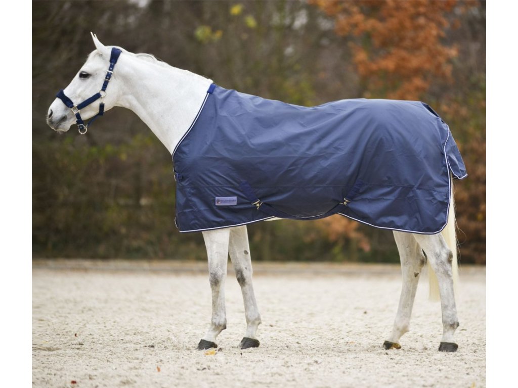 Tato praktická pláštěnka je ideální volbou pro deštivé dny, kdy je třeba koně ochránit před vlhkem, ale zároveň mu poskytnout dostatek pohodlí bez zbytečného hřejivého materiálu. Vyrobena ze 100% polyesteru, je lehká, voděodolná a dobře prodyšná. Díky záševkům v oblasti ramen neomezuje v pohybu, křížové břišní popruhy a zapínání na hrudi zajišťují bezpečné uchycení. Zadní část deky je opatřena krytem ocasu, který chrání i tuto citlivou oblast.