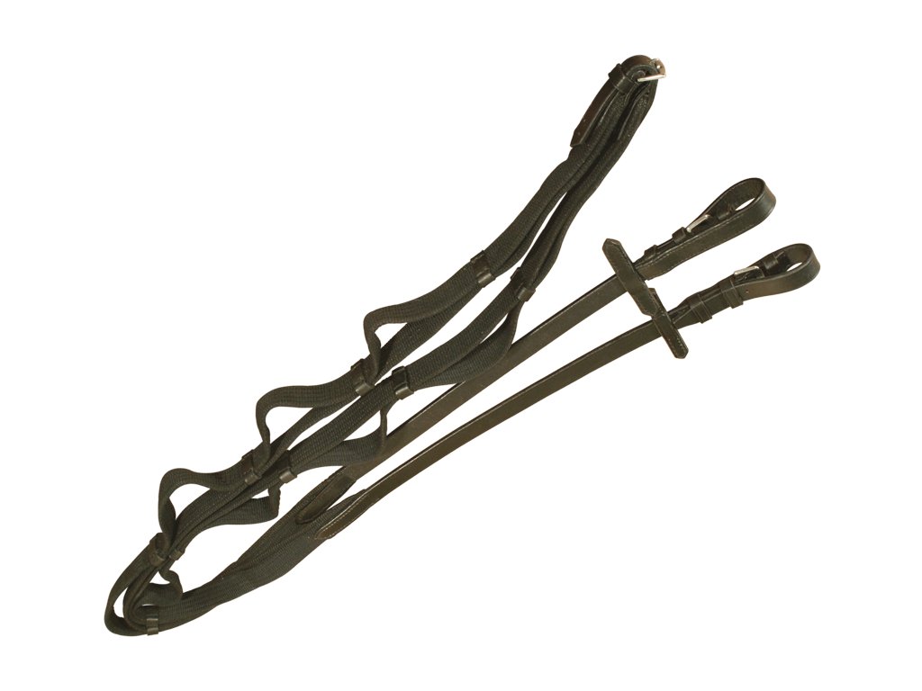 Plátěné honební otěže s oky nabízejí pevný a jistý úchop díky integrovaným okům. Ty usnadňují správné držení a přispívají k lepší kontrole nad koněm. Otěže jsou odolné, pohodlné a vhodné pro každodenní ježdění i intenzivní práci.