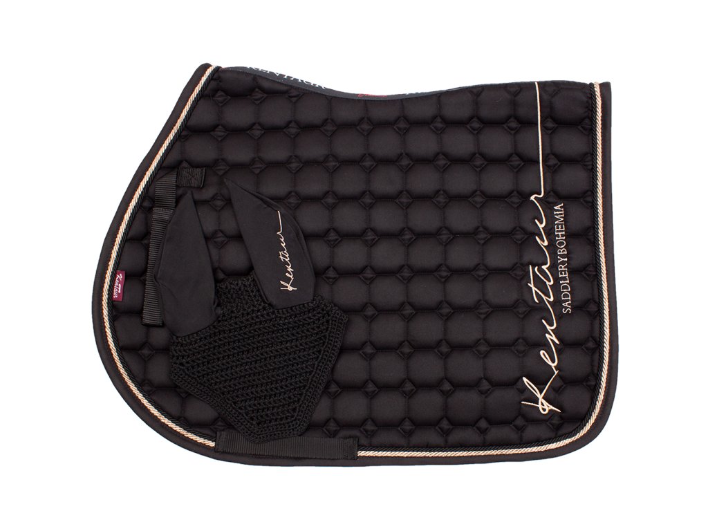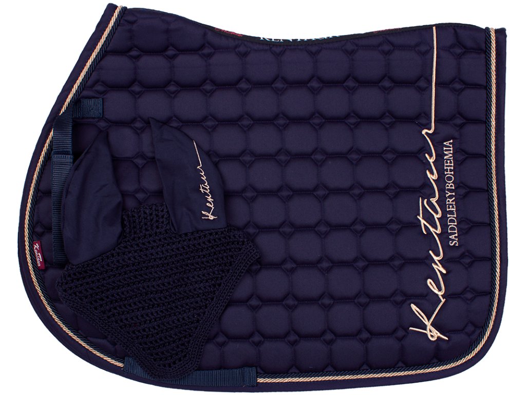 Set podsedlové dečky a náušníků Kentaur v elegantním rosegold stylu je ideální volbou pro jezdce, kteří kladou důraz na funkčnost i vzhled. Dečka je anatomicky tvarovaná, lemovaná ozdobnou dvojitou kroucenou šňůrou a doplněná decentním logem v odstínu rosegold. Spodní část tvoří funkční hi-tech materiál, který účinně absorbuje pot a pomáhá udržet koně v suchu. Náušníky ve stejném designu mají elastické uši pro pohodlné nošení a stabilitu během pohybu. Celek tvoří stylově sladěný a praktický komplet.