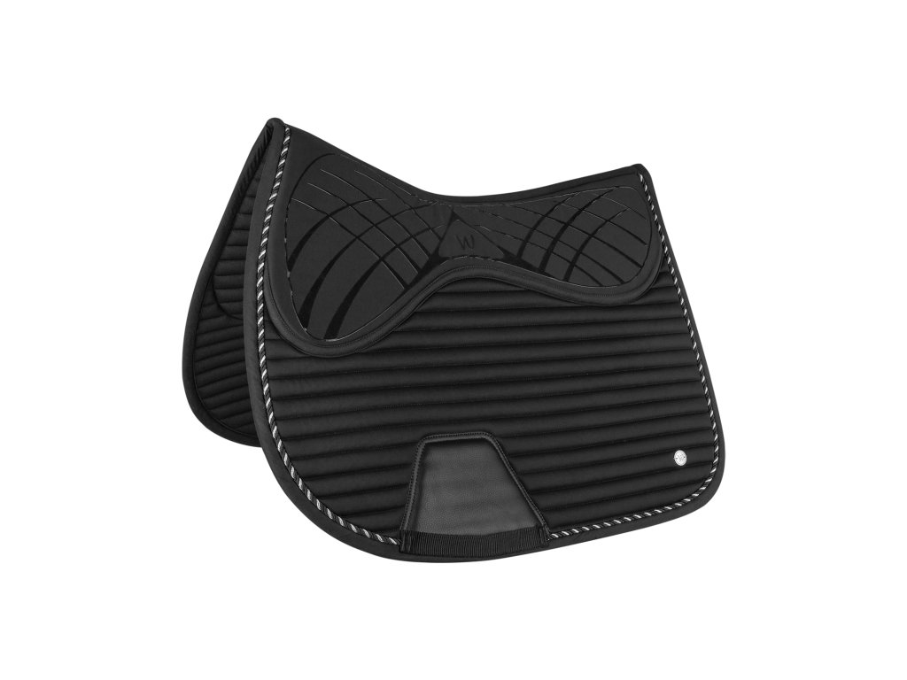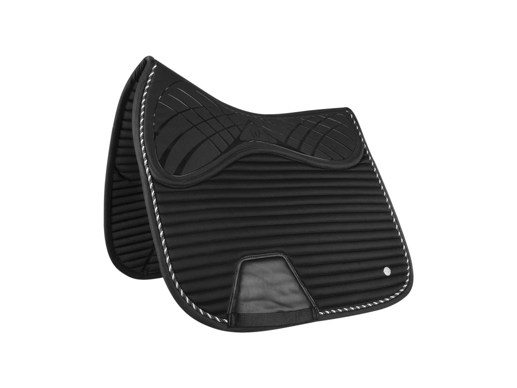 Podsedlová dečka Riga spojuje funkčnost s moderním sportovním vzhledem. Díky integrované pěnové vrstvě ve vrchní části je ideálně přizpůsobena pro rozložení tlaku a komfort koně. Silikonové protiskluzové zóny na horní straně zabraňují nežádoucímu posuvu sedla. V oblasti podbřišníku je dečka zpevněná pro delší životnost. Elegantní vzhled doplňuje ozdobná šňůrka a kovový štítek.