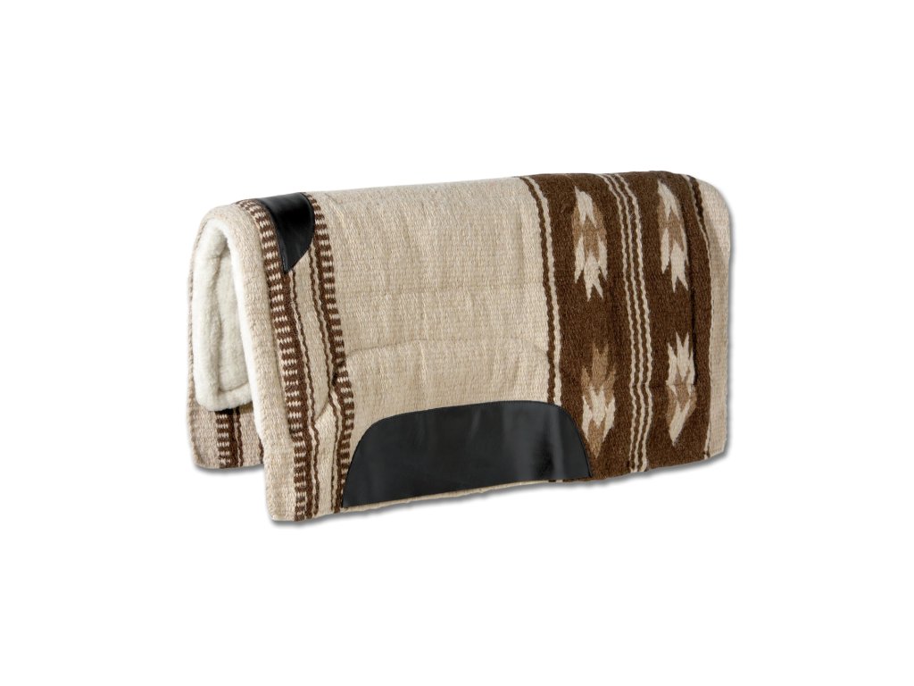 Westernová podsedlová dečka Utah značky Waldhausen kombinuje atraktivní vzhled s praktickým zpracováním. Vnější část tvoří pevný materiál ze směsi vlny a polyesteru, který poskytuje odolnost a přirozenou prodyšnost. Vnitřní anatomicky tvarovaná podložka je vyrobena ze syntetické kožešiny, která zajišťuje pohodlí a tlumení nárazů. Dečka má rozměry 86 × 87 cm a je vhodná pro běžné i sportovní využití ve westernovém stylu.