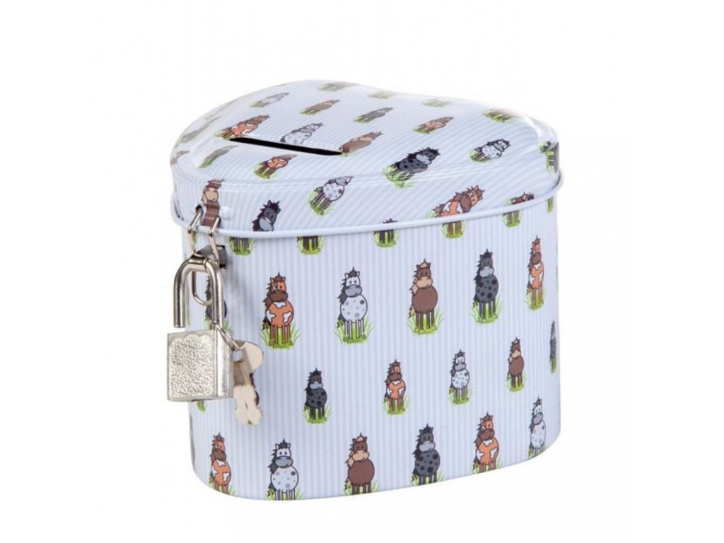 Roztomilá plechová pokladnička s motivem oblíbené kolekce LITTLE HORSES je skvělým doplňkem pro děti. Díky přiloženému zámku a dvěma klíčkům pomáhá dětem učit se základům hospodaření s penězi zábavnou formou. Ideální jako dárek nebo praktický doplněk do dětského pokoje.