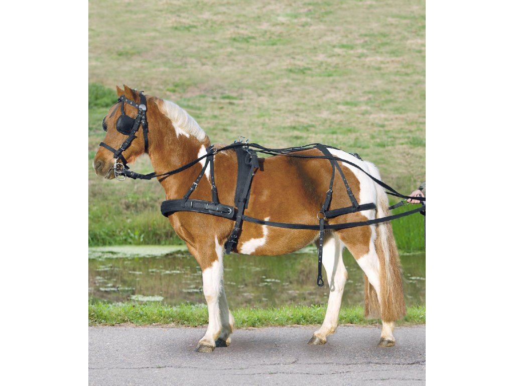 Tento syntetický postroj značky Waldhausen je ideální volbou pro každodenní použití i výcvik menších koní. Vyrobený z odolného nylonu a doplněný měkkým polstrováním zajišťuje pohodlí i při delším nasazení. Součástí je kompletní výbava, uzdečka s klapkama, bez udidla.