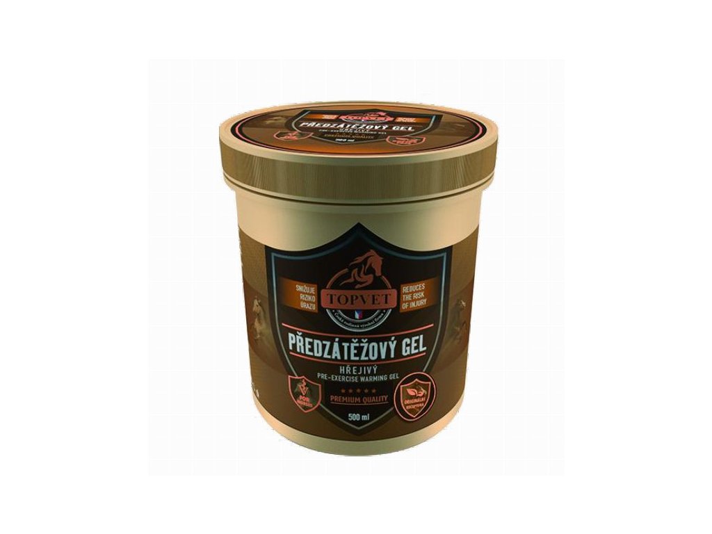 Hřejivý předzátěžový gel TOPVET je určen pro přípravu pohybového aparátu koně před fyzickou aktivitou. Obsahuje kombinaci přírodních účinných látek s prohřívacím účinkem, které napomáhají prokrvení svalů a šlach, čímž snižují riziko jejich namožení nebo poranění. Gel se rychle vstřebává, nezanechává mastný film a je ideální pro použití před tréninkem, jízdou nebo jinou zátěží. Pravidelné používání podporuje pružnost svalů a celkovou pohybovou pohodu koně.