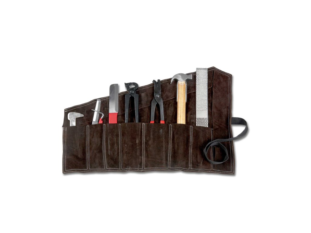 Profesionální podkovářská sada Waldhausen je ideální volbou pro každého, kdo se věnuje údržbě a ošetření kopyt. Všechny nástroje jsou přehledně uspořádány v pevné a odolné kožené tašce, která zajišťuje snadné přenášení i ochranu nářadí. Sada obsahuje rašpli, nůž, utínku, sekáček, háček na kopyta, kleště na hřebíky, dotahovací kleště, kladivo. Vhodné pro domácí i profesionální použití.