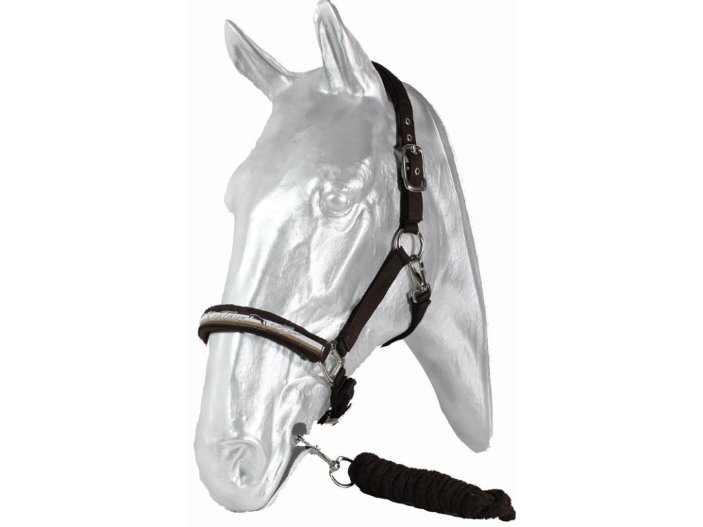 Nastavitelný nánosník, oboustranně nastavitelný nátylník, podhrdelník s praktickou karabinou. Nátylník i nánosník podložen měkkým fleecem.