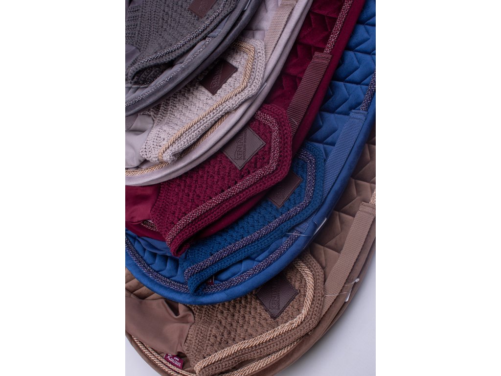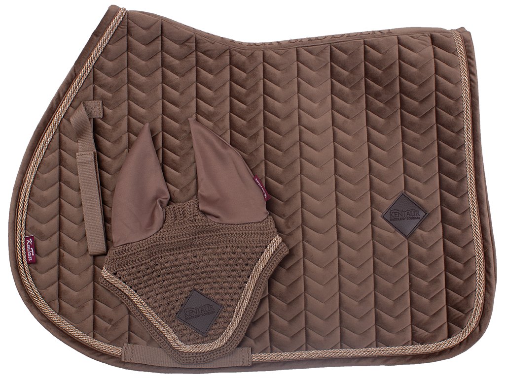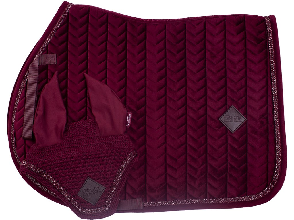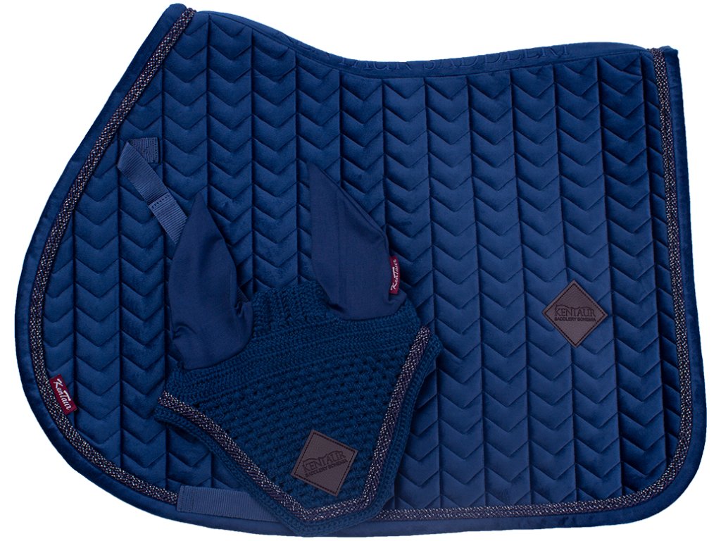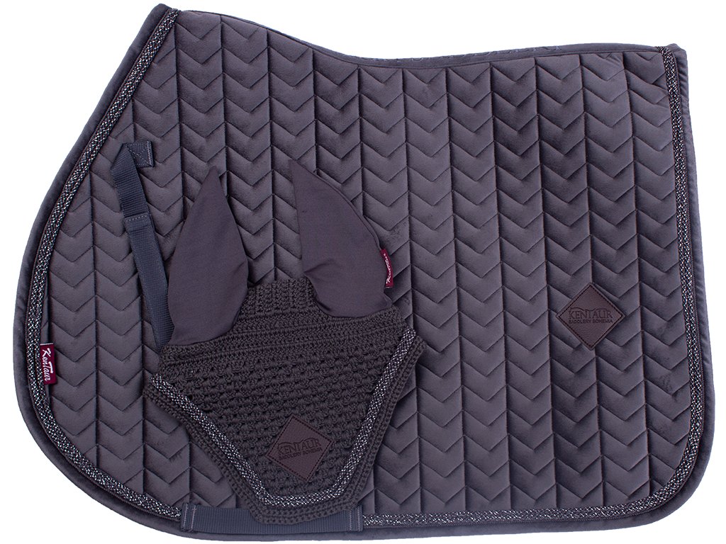 Stylový set KENTAUR 40598 obsahuje sametovou podsedlovou dečku s novým prošívaným vzorem a ladící čabraku s náušníky. Ozdobné lemování tvoří kroucené šňůry s lurexovým leskem a koženka s logem značky Kentaur, což celému setu dodává elegantní vzhled. Praktická spodní strana z HI-TECH síťoviny zajišťuje rychlé schnutí a pohodlí při každodenním ježdění i na závodech. K dispozici v několika atraktivních barvách.