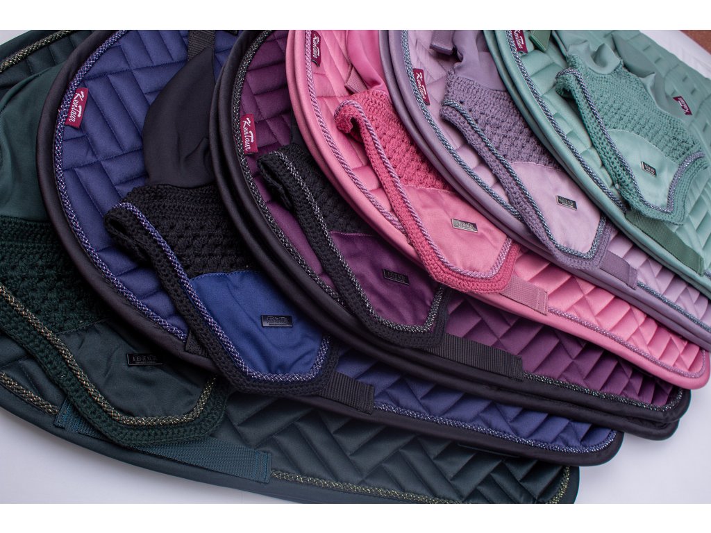 Saténový set Kentaur 40599 je ideální volbou pro jezdce, kteří chtějí kombinovat funkčnost a styl. Podsedlová dečka má nový moderní vzor prošívání a čabraka s náušníky ladí v barvě i designu. Ozdobné kroucené šňůry s lurexovým leskem doplňuje decentní plíšek s logem Kentaur. Spodní strana dečky je vyrobena z rychleschnoucí HI-TECH síťoviny, která přispívá k pohodlí koně i při intenzivní práci. K dispozici v několika barevných variantách.