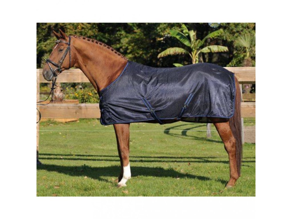 Síťovaná deka Sao Paulo HKM je ideální volbou pro letní měsíce, kdy je potřeba chránit koně před hmyzem a zároveň zajistit dobrou ventilaci. Vyrobena z lehké a pevné síťoviny, poskytuje potřebné krytí bez přehřívání. Deka je vybavena dvojitým zapínáním vpředu, překříženými břišními popruhy a zaobleným zadním dílem pro lepší fixaci přes ocas. Měkce podložený kohoutek zabraňuje otlakům a zvyšuje pohodlí koně.