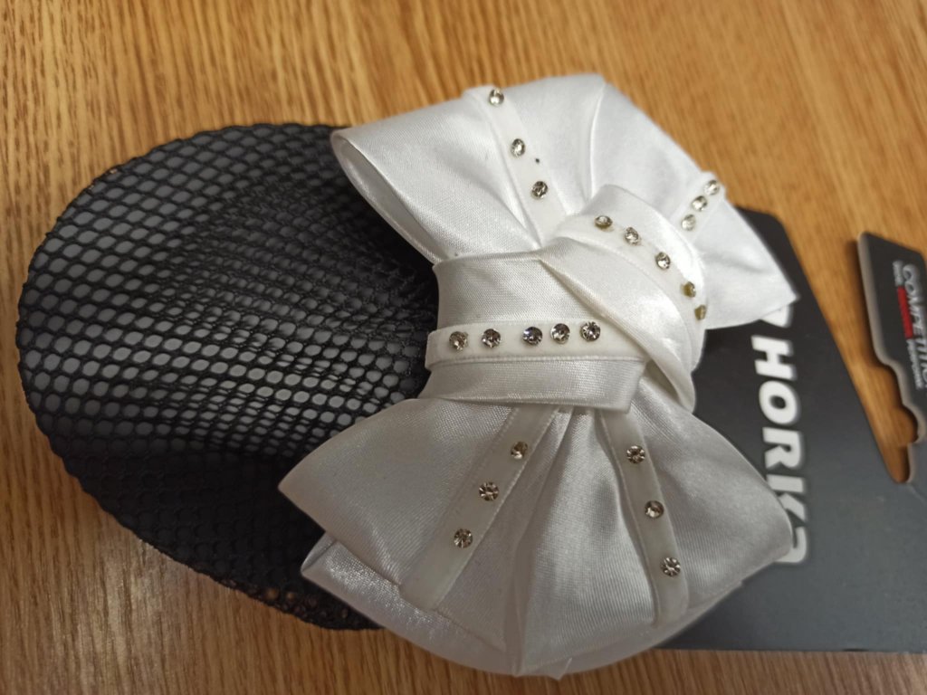 Luxusní sponka se síťka do vlasů s mašlí. Zdobena štrasovými kamínky a sametovými detaily.