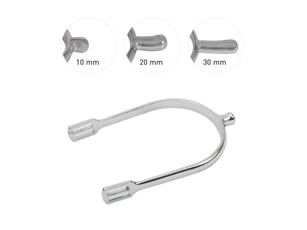 Součástí balení jsou nylonové řemínky s kovovou přezkou, díky nimž lze šporny snadno a bezpečně upevnit. Pánská velikost zajišťuje dostatek prostoru pro širší jezdeckou obuv. Krček je zakončen klasickým kulatým koncem pro jemné, ale efektivní pobídky.