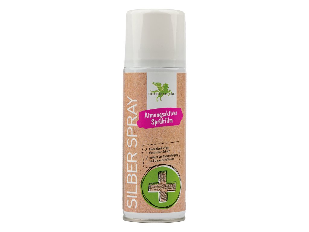 Bense & Eicke Silver Spray je dezinfekční sprej, který vytváří na pokožce ochranný kovový film. Tento film je elastický a prodyšný, což umožňuje pokožce dýchat, zatímco je chráněna před bakteriemi a dalšími škodlivými vlivy. Sprej je vhodný pro použití na rány, odřeniny a jiná poranění, kde poskytuje účinnou ochranu a podporuje hojení.