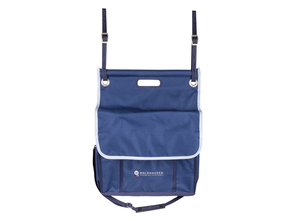 Malá taška na box od značky Waldhausen slouží jako praktický organizér pro stáj či závody. Nabízí dostatek prostoru pro drobnosti, jako je sada na ošetřování, ochrana nohou nebo další vybavení. Tašku lze snadno upevnit k boxu pomocí dvou nastavitelných poutek. Má pevné dno, zesílené boky a přehledné členění – dvě vnější přihrádky, kapsu na zip a vnitřní prostor s přepážkou a suchým zipem. Vyrobena z odolného materiálu 600 denier, který zajišťuje dlouhou životnost.