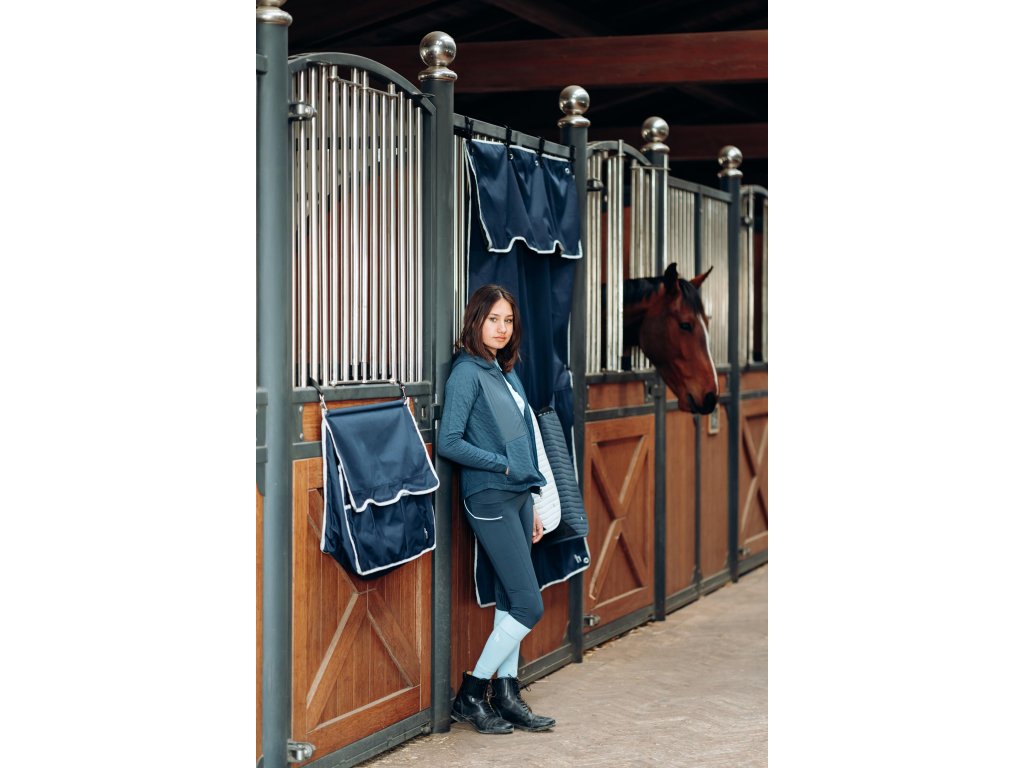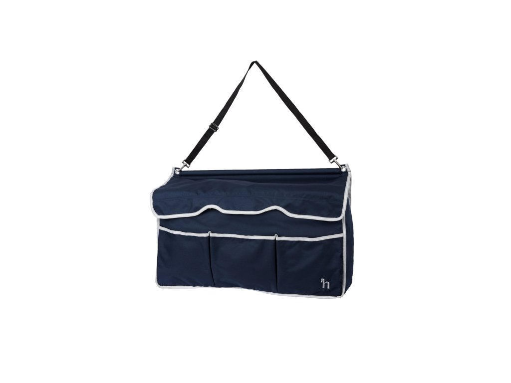 Tato závěsná taška značky Horze je navržena pro pohodlné uspořádání čisticích pomůcek a dalších drobností. Díky dřevěné tyči udrží pevný tvar při zavěšení na box či vrata. Má tři prostorné vnitřní kapsy a tři další vně, pro rychlý přístup. Ramenní popruh s karabinami umožňuje přenos přes rameno nebo zavěšení. Materiál snadno omyjete – ideální pro každodenní použití ve stáji.