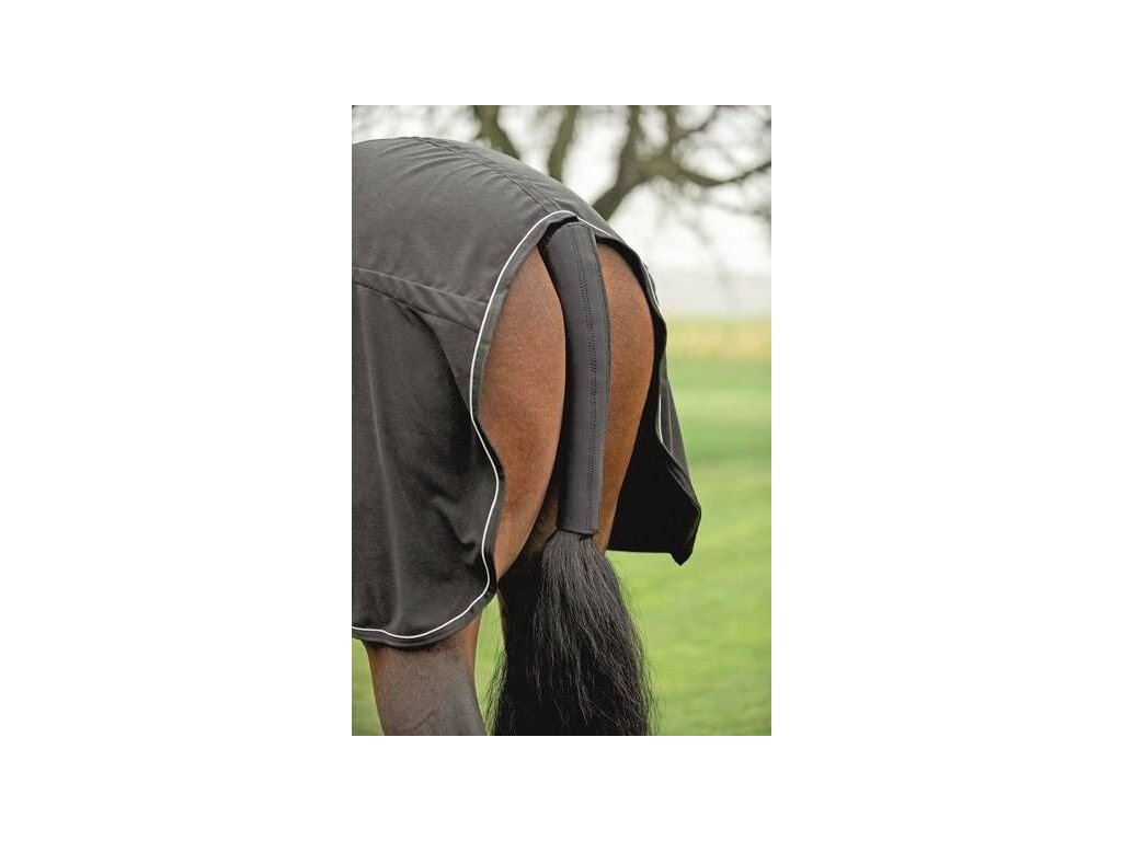 Ochranu navlékněte na konec ocasu koně po důkladném očištění. Ujistěte se, že pokrývá celou délku ocasu, aniž by byla příliš utažená. Používejte při přepravě, mytí nebo v boxu pro ochranu před nečistotami.