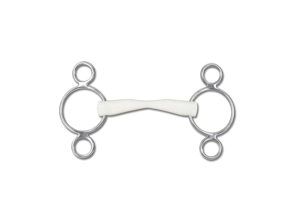 Happy Mouth je rovné udidlo typu „sněhulák“ s plastovým náustkem a oblíbenou jablečnou příchutí, která podporuje ochotu koně přijímat udidlo a stimuluje žvýkací aktivitu. Náustek je hladký a příjemný na dotek, ideální pro koně s citlivou hubou. Kovové části jsou vyrobeny z odolné nerezové oceli, což zajišťuje dlouhou životnost a snadnou údržbu. Díky své konstrukci a chuti je toto udidlo skvělou volbou pro každodenní ježdění i trénink.
