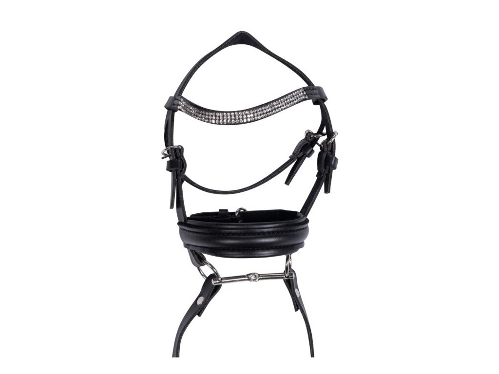 Součástí balení jsou otěže , čelenka s kamínky a udidlo (bit). Velikost uzdečky je nastavitelná a pokyny k použití jsou přiloženy v balení.