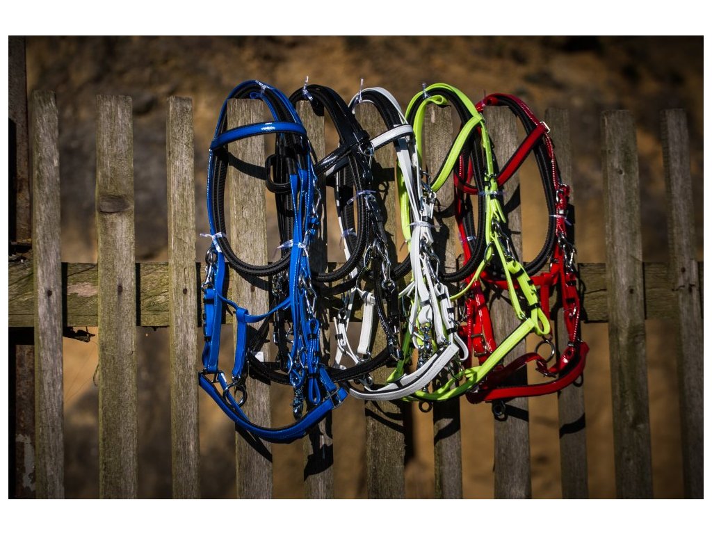- Kombinovaná funkce (uzdečka a ohlávka): Rychlá a snadná přeměna díky karabinám na udidle.