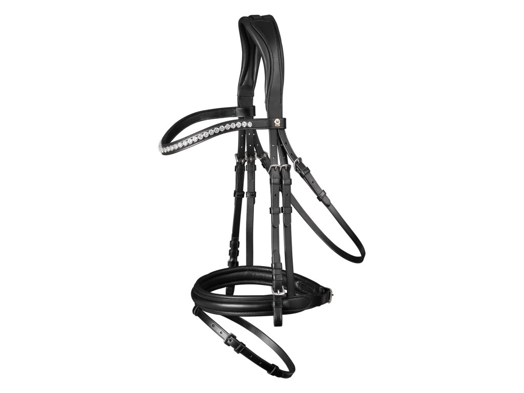 Uzdečka Waldhausen z kolekce S-Line Classy je určena pro náročné jezdce, kteří kladou důraz na pohodlí koně i estetiku. Nátylník je anatomicky tvarovaný s prostorem pro uši a měkce polstrovaný. Anglický kombinovaný nánosník a záhnutá čelenka s kamínky doplňují elegantní vzhled. Uzdečka je vyrobena z nejkvalitnější evropské kůže, kování je z nerezové oceli. Otěže nejsou součástí.