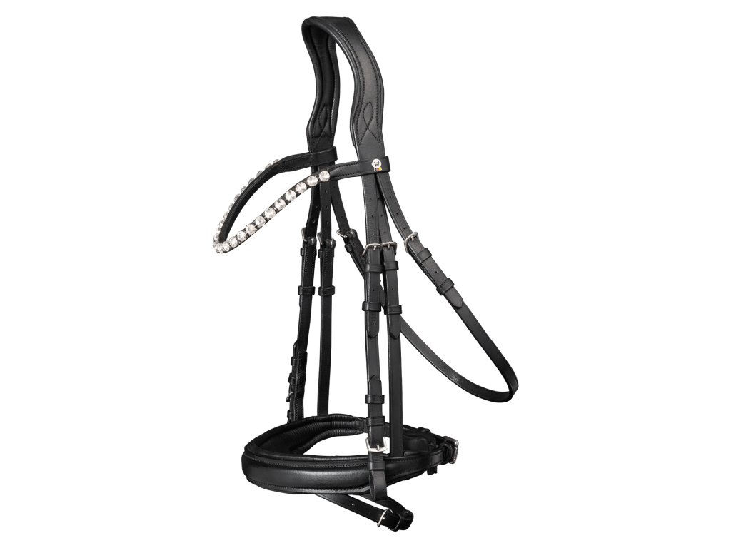 Uzdečka Waldhausen X-Line Beauty je ztělesněním elegance a pohodlí. Vyrobena z kvalitní evropské kůže, nabízí anatomicky tvarovanou čelenku a anglický kombinovaný nánosník. Čelenka se třpytivým řetízkem a kamínky působí velmi reprezentativně.