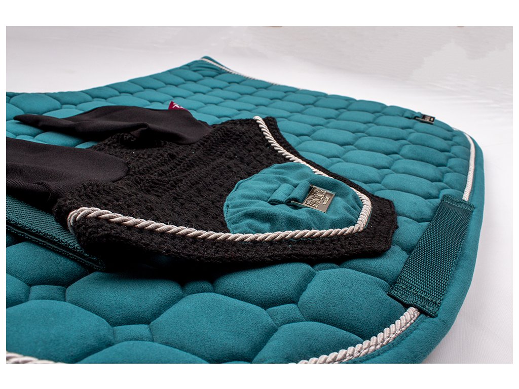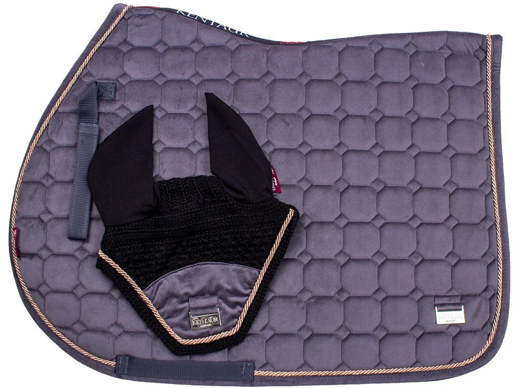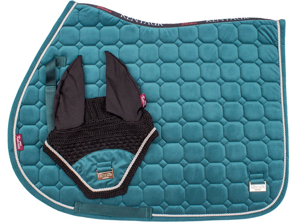Tato všestranná sada od značky Kentaur nabízí kombinaci atraktivního vzhledu a praktického využití. Jemně prošívaný sametový povrch doplňuje anatomický tvar, který respektuje linii hřbetu a poskytuje pohodlí při ježdění. Spodní vrstva z funkčního materiálu jako síťovina nebo CoolMax účinně odvádí pot a podporuje cirkulaci vzduchu. Díky páskům k uchycení k sedlu a podbřišníku dečka drží stabilní pozici během pohybu. Styl doplňují ladící náušníky s logem Kentaur, které tvoří harmonický komplet vhodný pro trénink i reprezentaci.