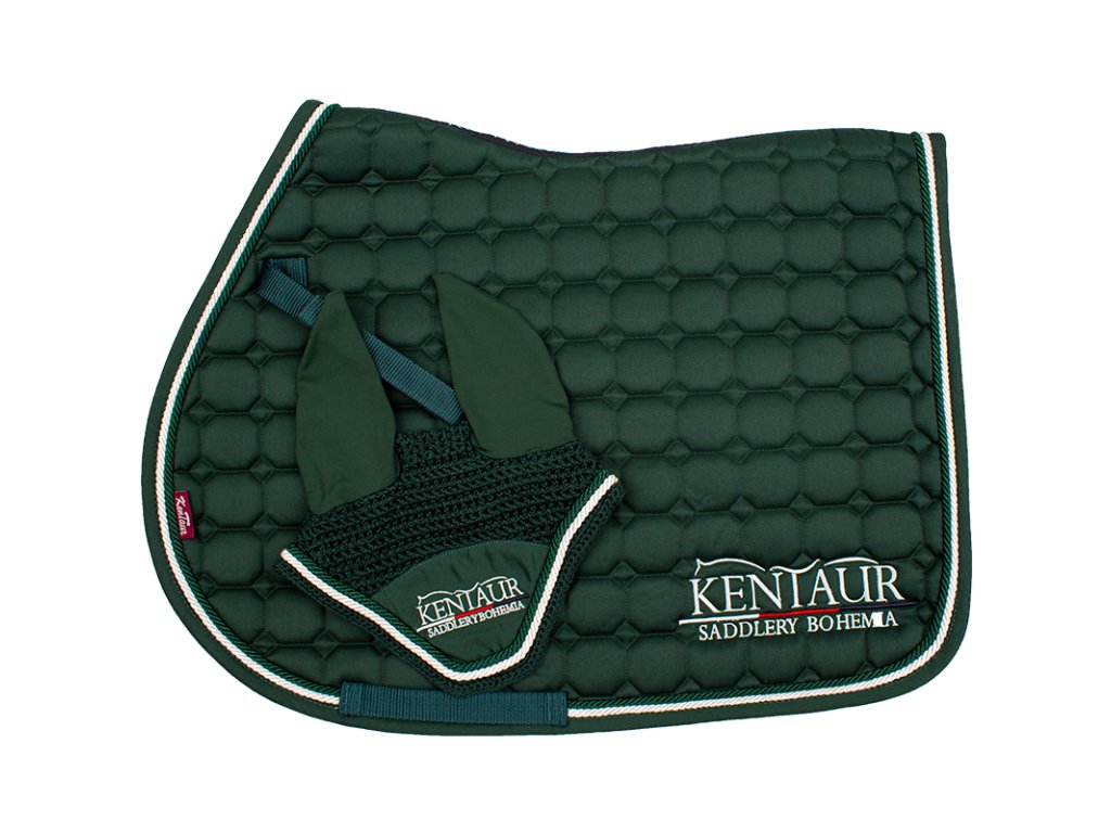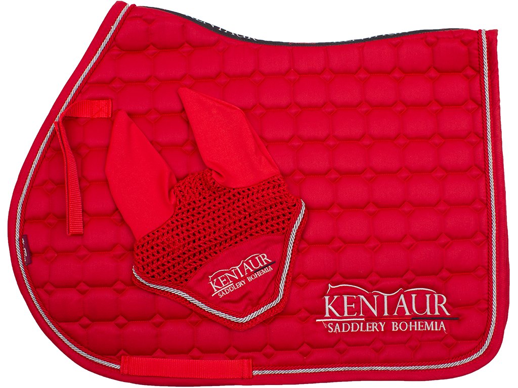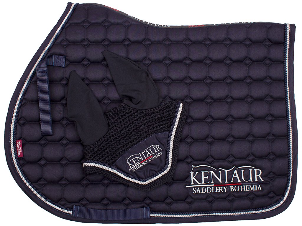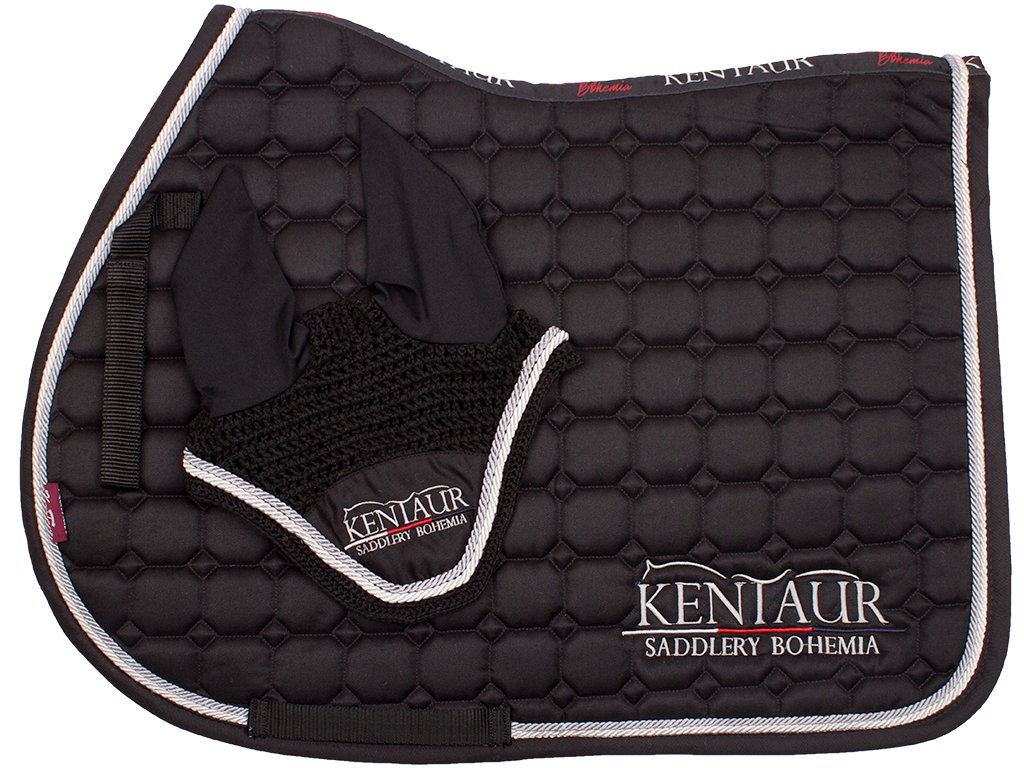 Oblíbený set Kentaur kombinuje všestranně tvarovanou podsedlovou dečku a sladěné náušníky s logem. Dečka je vyrobena z kvalitního prodyšného materiálu a je vybavena poutky pro uchycení k sedlu a podbřišníku. Spodní vrstva z hi-tech textilie výborně odvádí pot a pomáhá udržet koně v suchu. Elegantní vzhled doplňuje dekorativní dvojitý lem. Náušníky mají elastické uši a přední část zdobí logo Kentaur, čímž celek působí velmi sladěně a profesionálně. Skvělá volba pro trénink i reprezentaci.