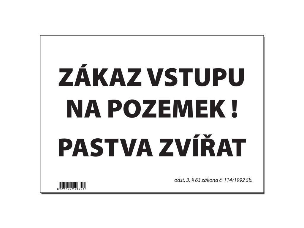 Výstražná cedulka - ZÁKAZ VSTUPU NA POZEMEK! PASTVA ZVÍŘAT