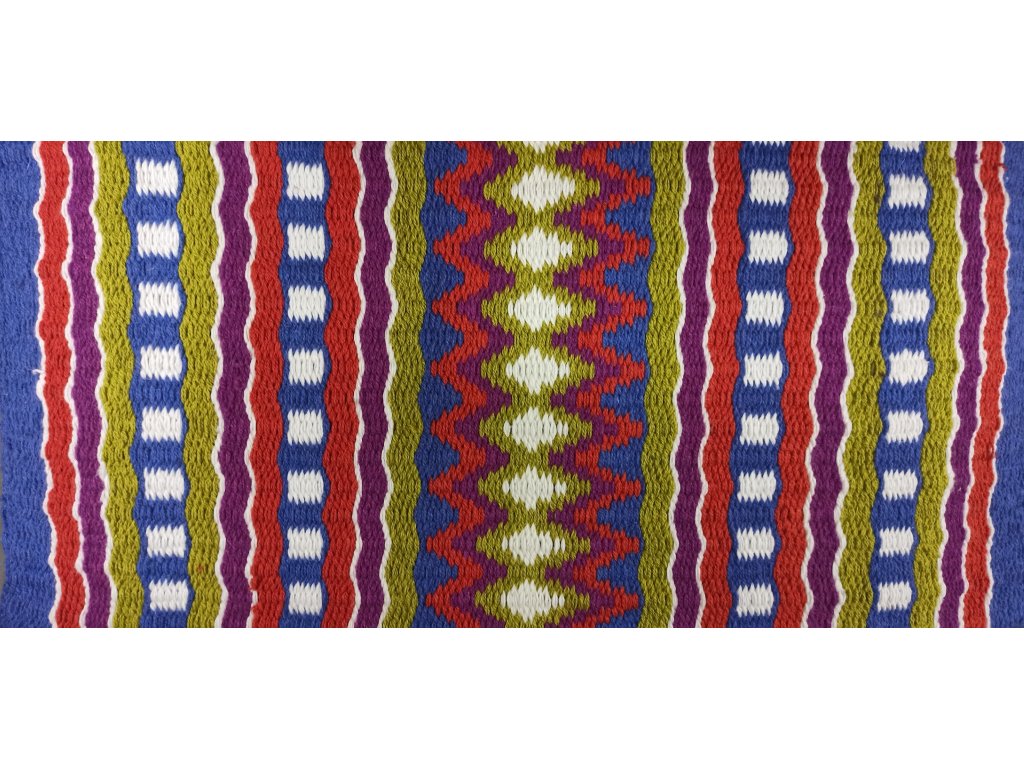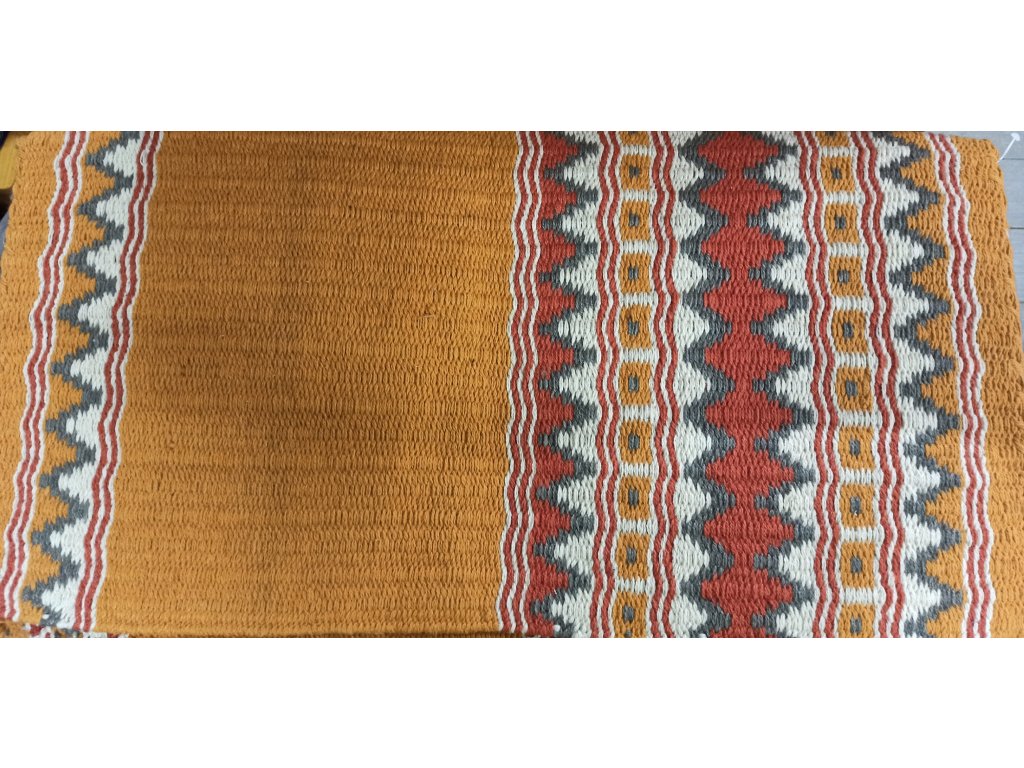 Westernová show deka je vyrobena tradiční technikou ručního tkaní ze 100% vlny a nabízí ideální kombinaci stylu, odolnosti a funkčnosti. Hustá vlna zajišťuje výbornou izolaci proti chladu i odvodu vlhkosti, zatímco pevná vazba tlumí nárazy a zvyšuje pohodlí při jízdě. Deka je rozměrově vhodná pro širokou škálu westernových sedel. Výrazné geometrické vzory podtrhují vzhled každého soutěžního outfitu.. Každý kus je originál – barevnou variantu lze specifikovat při objednávce.