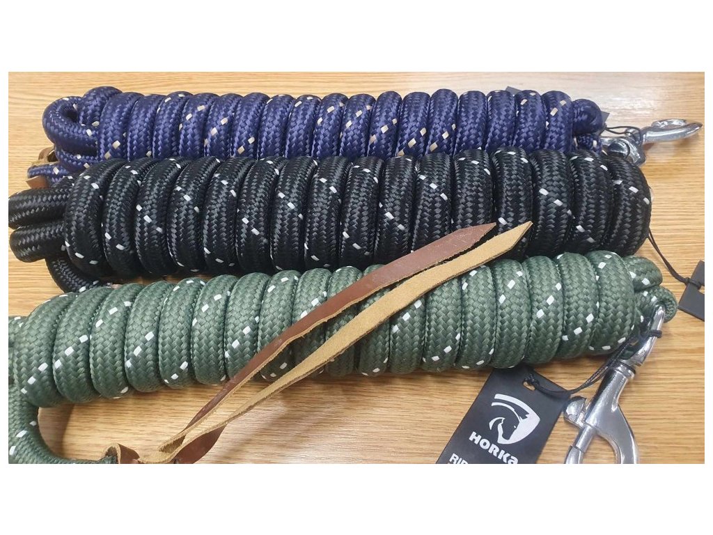 Klasické horsemanship lano zakončené koženým kousátkem. Klasická karabina. Délka 4,2m.Doplňkové parametry