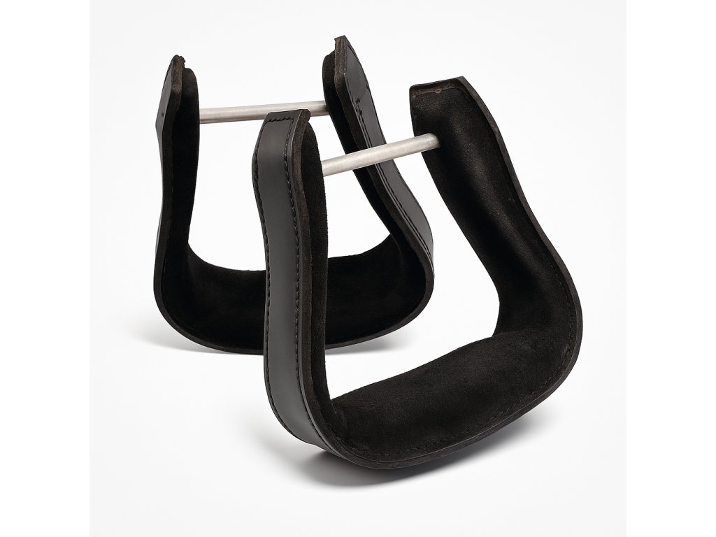 Tyto westernové třmeny kombinují tradiční dřevěnou konstrukci s kvalitním koženým potahem v černé barvě. Díky pevné konstrukci a elegantnímu vzhledu jsou vhodné pro každodenní použití i rekreační westernové disciplíny. Třmeny poskytují dostatečný komfort i stabilitu při jízdě. Dodávány v páru.