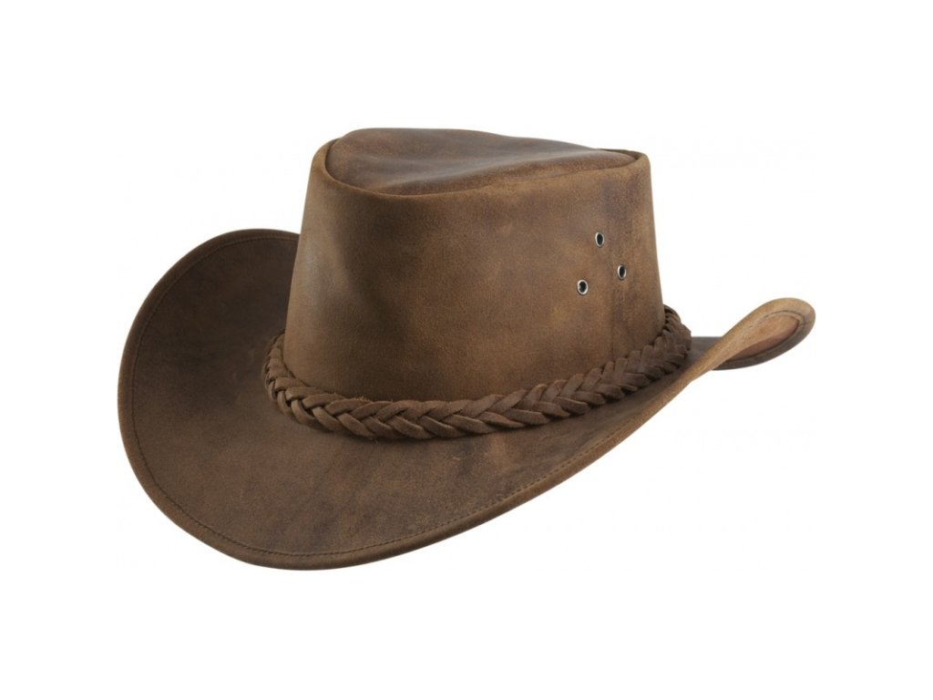 Poddajný klobouk z hladké hovězí kůže s průduchy a drátem na okraji pro udržení stálého tvaru.