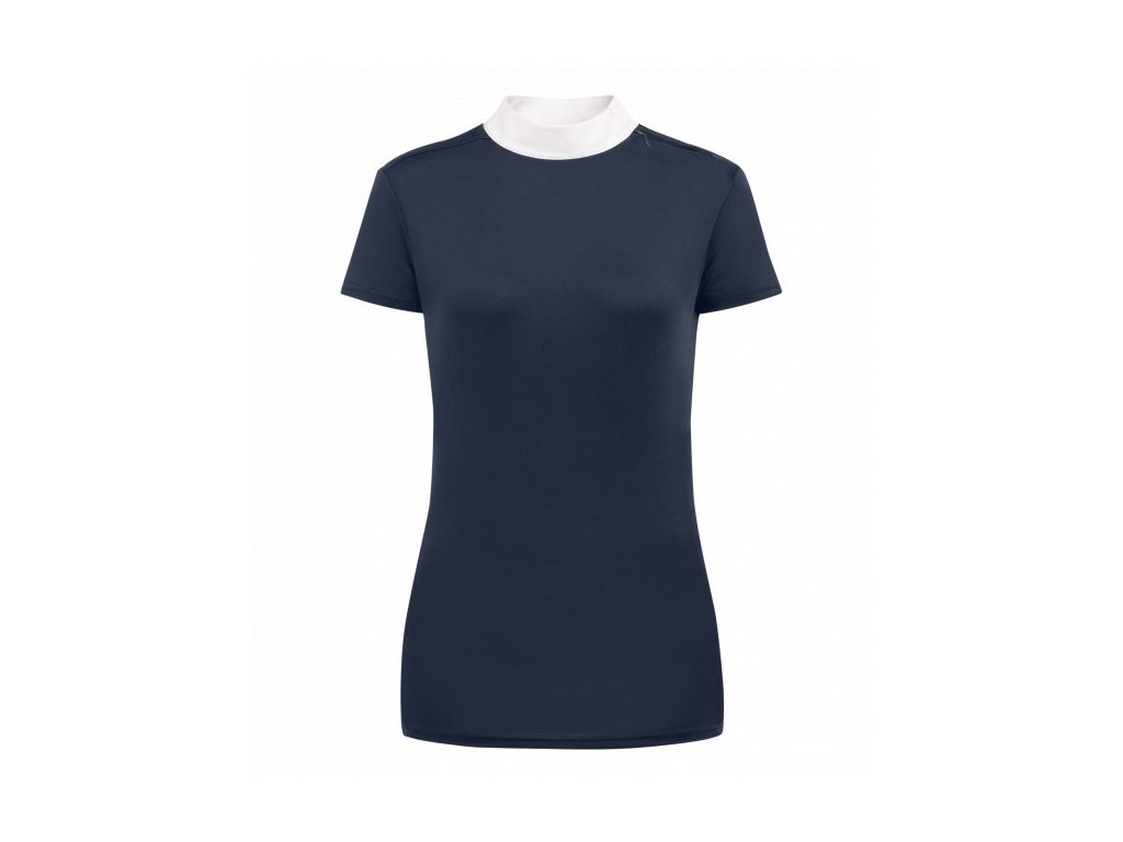 Funkční závodní triko s bílým stojáčkem.